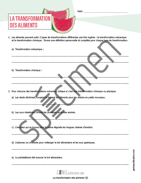 L'élève définit ce que sont les transformations mécaniques et les transformations chimiques des aliments, puis indique si les transformations décrites sont mécaniques ou chimiques.