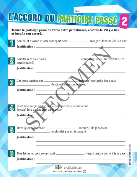 L'élève doit accorder les verbes entre parenthèses au participe passé et justifier leur accord.
