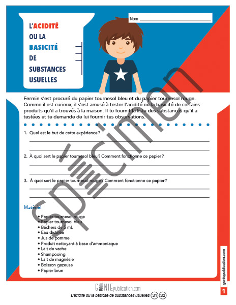 L'élève doit réaliser une expérience afin de déterminer si certaines substances usuelles sont acides ou basiques. Il rédige un rapport de laboratoire du même coup.