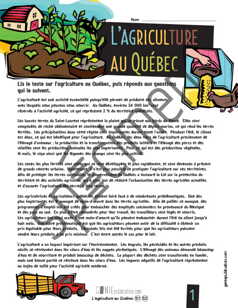 Après avoir lu un texte qui traite de l'agriculture au Québec et de ses enjeux, l'élève doit répondre à des questions.