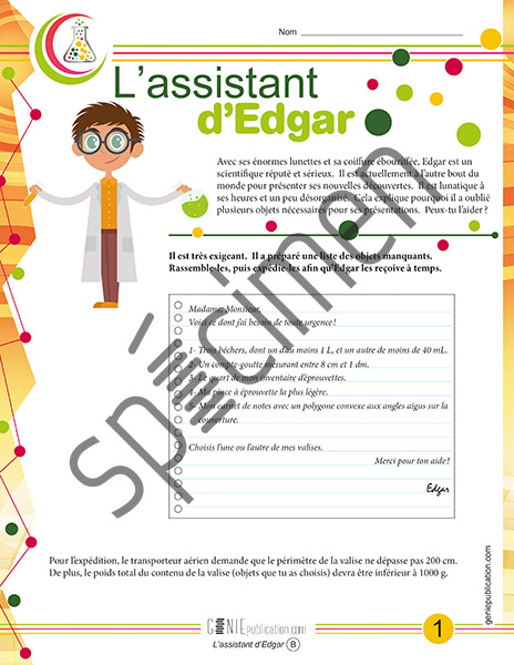 Dans cette situation-problème, l'élève doit aider un scientifique qui a oublié des objets chez lui.