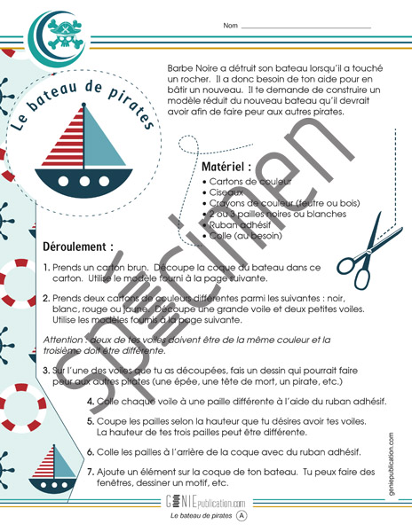 Activité de bricolage pour faire un bateau de pirates.
