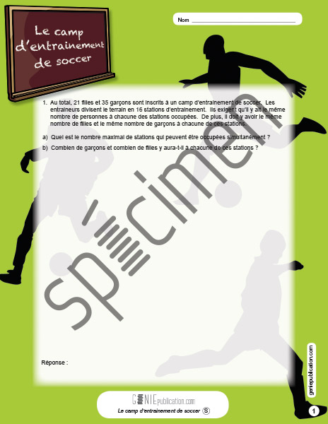 L'élève doit résoudre deux problèmes écrits faisant appel à sa capacité de déterminer le plus grand commun diviseur de deux nombres entiers.