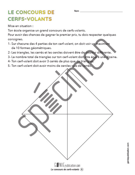 Dans cet exercice, l’élève doit dessiner les bonnes formes dans le cerf-volant en respectant les restrictions.
