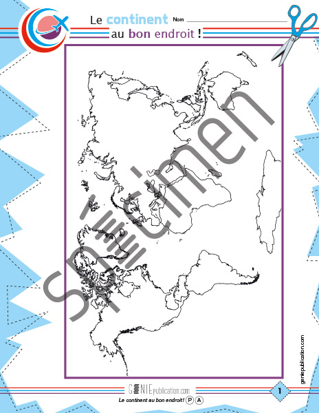 L'élève doit placer les continents au bon endroit, comme un casse-tête. Utiliser de la colle ou du ruban adhésif pour fixer les morceaux.