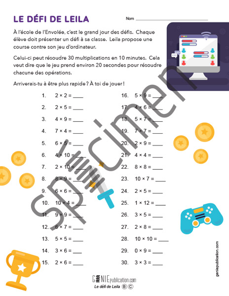 Leila propose à sa classe de battre l’ordinateur dans un jeu vidéo. Ce jogging mathématique demande à l’élève de résoudre 30 multiplications en 10 minutes.