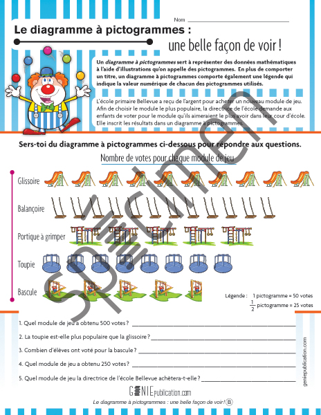 L'élève doit observer un diagramme à pictogrammes et répondre à des questions qui s'y rapportent.
