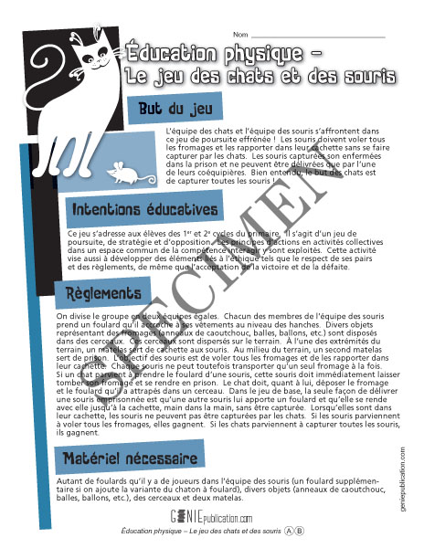 Cette fiche s'adresse aux enseignants en éducation physique de même qu'aux moniteurs de camps de jour. Elle explique les règles et les variantes du jeu des chats et des souris, un jeu de poursuite effrénée !