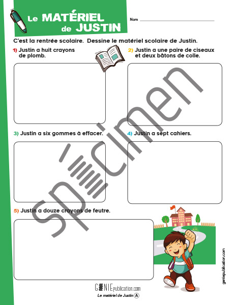 L'élève doit dessiner le bon nombre d'objets.