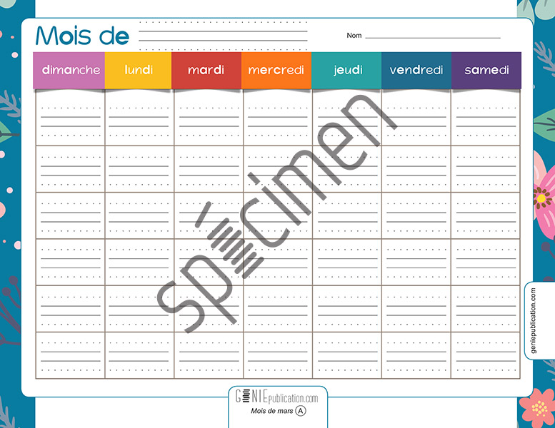 L'élève doit remplir le calendrier du mois de mars, et répondre aux questions à l'aide de son enseignant ou son enseignante.