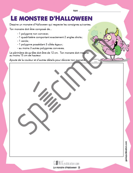 L'élève doit dessiner un monstre en respectant plusieurs contraintes géométriques et de mesure.
