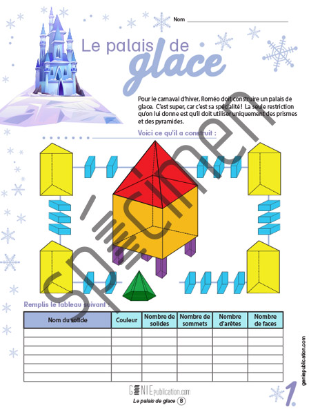 L’élève doit identifier et décrire les solides utilisés pour la construction d’un château de glace, puis résoudre des problèmes.