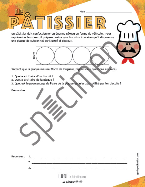 L'élève doit résoudre un problème faisant appel à ses connaissances géométriques et plus particulièrement à sa capacité de déterminer l'aire d'un disque.