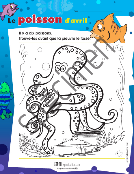 L'élève doit trouver les 10 poissons cachés dans l'image.