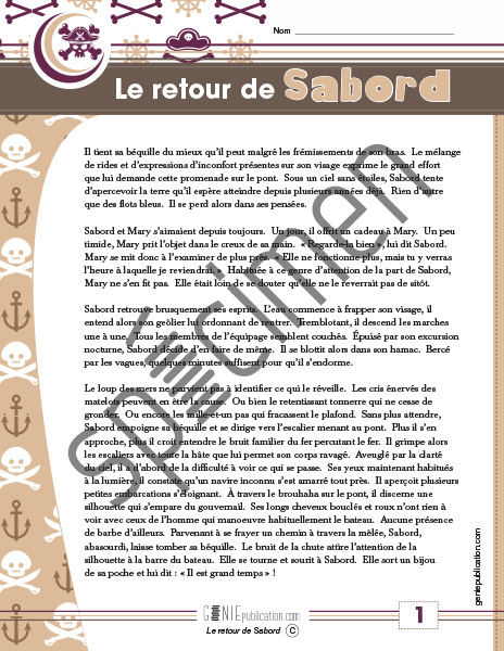 L'élève doit lire un texte sur le thème des pirates, puis répondre à des questions d'inférence et de réaction.