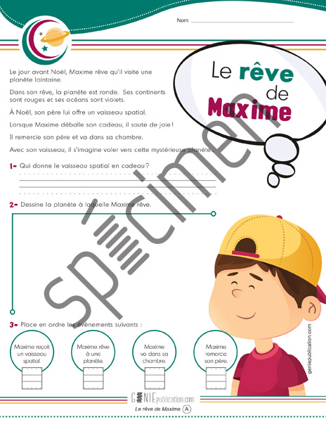 Activité dans laquelle l'élève doit lire un court texte, dessiner certaines informations et replacer les actions en ordre chronologique.