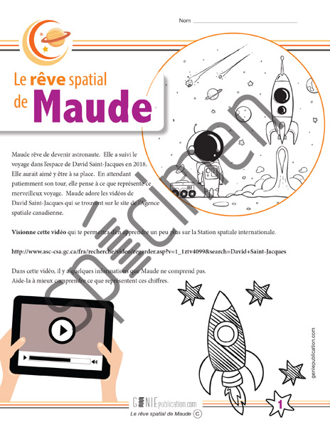 L'élève doit répondre à certaines questions de mathématiques à la suite du visionnement d'un court vidéo sur la Station spatiale internationale.