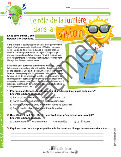 L’élève lit le texte et répond aux questions.