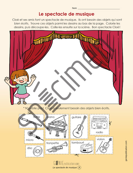 Activité dans laquelle l'élève doit identifier les noms d'objets correctement écrits.