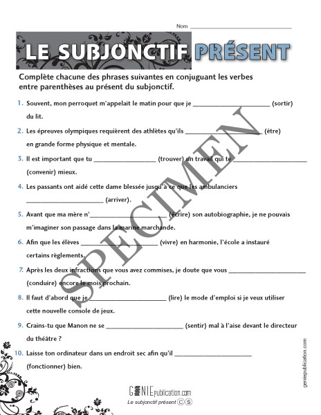 L'élève doit compléter des phrases en conjuguant les verbes entre parenthèses au présent du subjonctif.