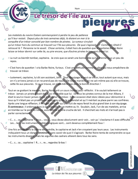 Activité de compréhension de lecture avec des questions d'inférence et de réaction sur le thème des pirates.