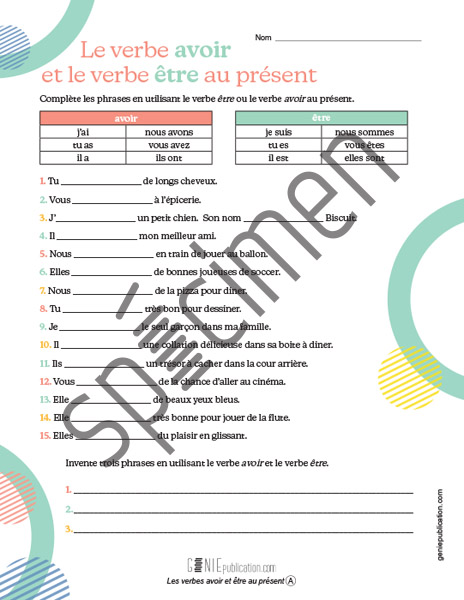 L’élève doit compléter les phrases avec le verbe avoir ou le verbe être au présent.