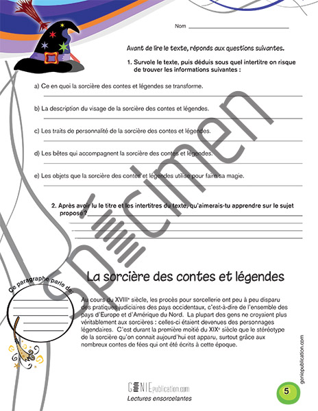 En complétant des exercices avant et après la lecture, les élèves prédisent le contenu du texte, y réagissent, repèrent les informations, les interprètent et développent leur vocabulaire. Bref, les jeunes lecteurs apprennent à mieux gérer leur compréhension de lecture tout en acquérant des connaissances en français et sur différents sujets traditionnellement associés à la saison automnale.