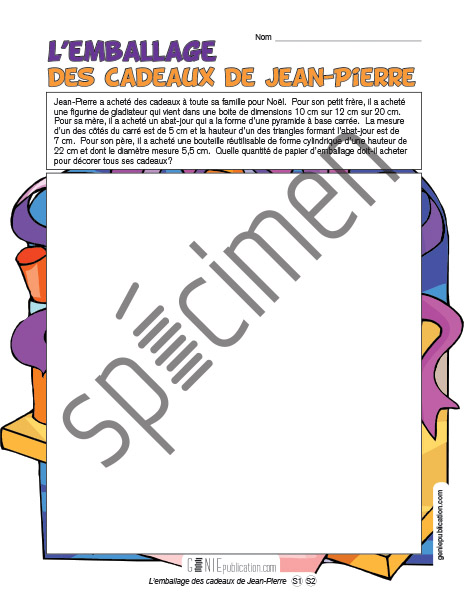 L'élève doit calculer la quantité de papier nécessaire pour emballer des cadeaux de Noël.