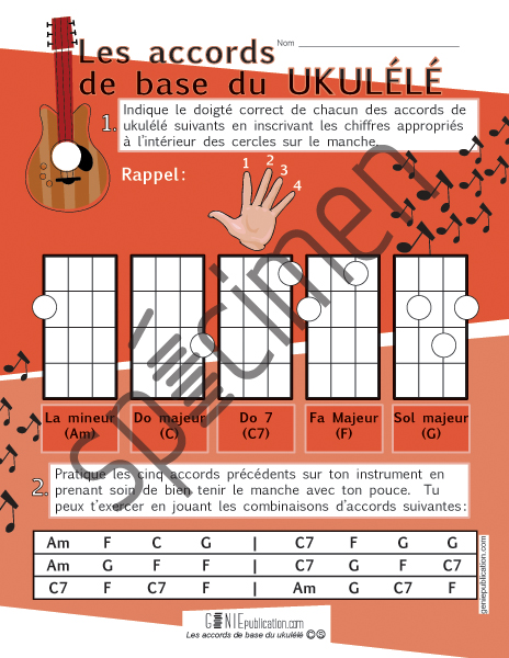 L'élève doit pratiquer cinq accords de base au ukulélé.