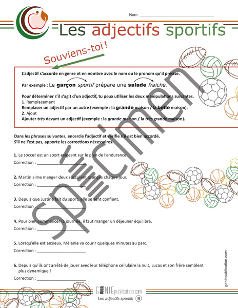 Activité dans laquelle l'élève apprendra à identifier et à accorder l'adjectif.