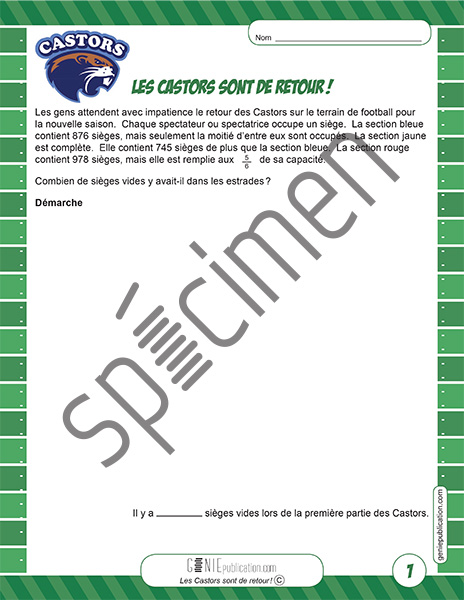 L’élève doit trouver le nombre de sièges vides qu’il y avait lors du match de football et calculer le profit que l’équipe a réalisé au cours de la journée.