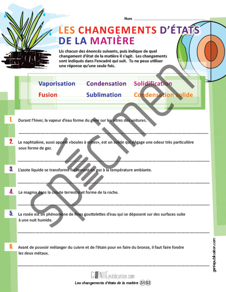 L'élève doit indiquer quel changement d'état de la matière est décrit dans chacun des énoncés.