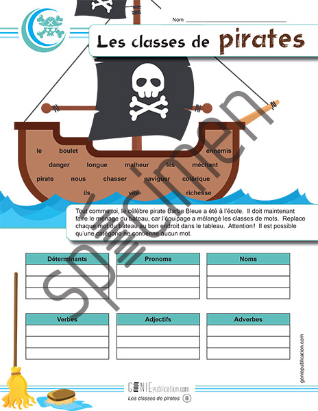 L'élève doit placer les mots dans la bonne classe de mots.
