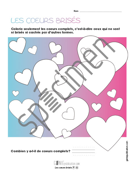 Activité de coloriage dans laquelle l'élève doit identifier les cœurs complets.