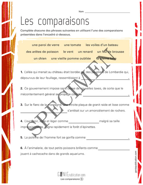 Selon le sens de la phrase, l'élève doit associer la comparaison la plus juste parmi celles qui sont proposées.