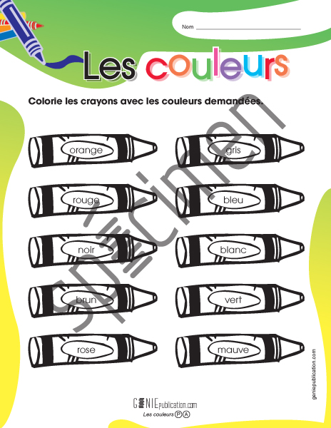 L'élève doit colorier les crayons avec les couleurs demandées.