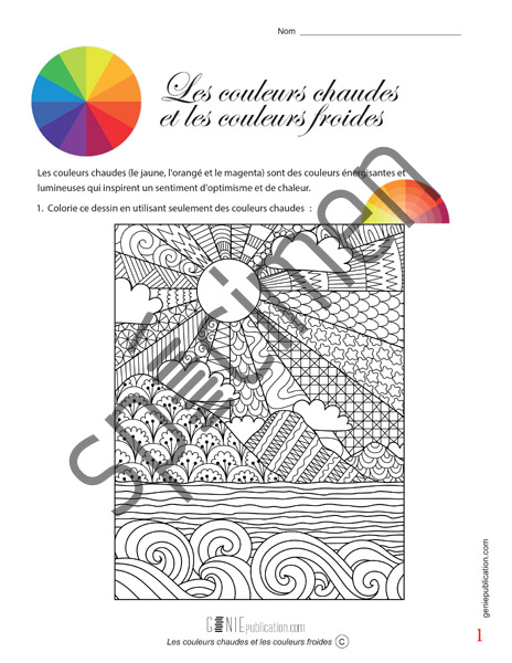 L’élève colorie un premier dessin en utilisant des couleurs chaudes et un second en utilisant des couleurs froides. Il ou elle compare les effets de l’utilisation de ces deux types de couleurs et apprécie chacun d’eux.