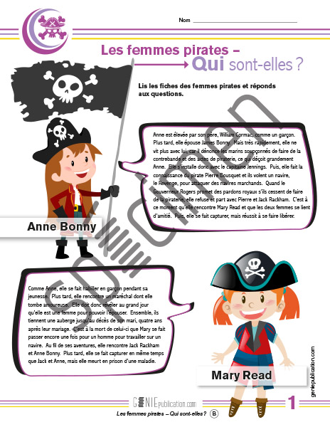 L'élève lit le texte qui parle de quatre femmes pirates, puis réponds aux questions.