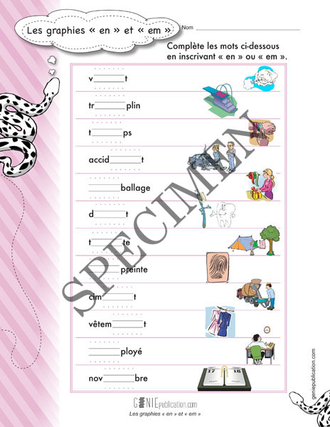 Cette activité permettra aux enfants de travailler l'écriture du son « en » sous deux formes différentes : « en » et « em ».