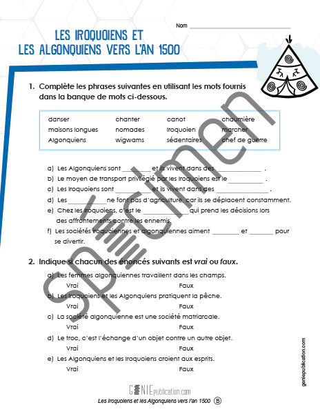 L'élève doit compléter des phrases et indiquer si des énoncés sont « vrai » ou « faux ».