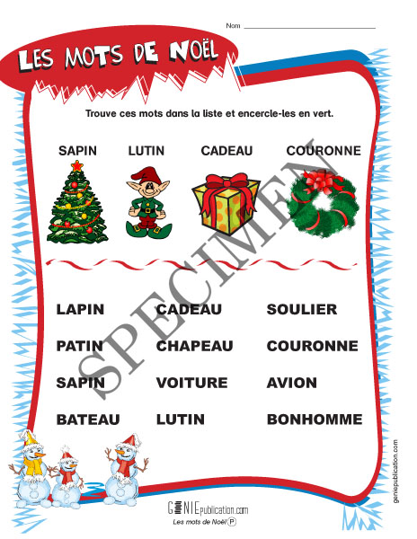L'élève doit repérer et encercler quatre mots spécifiques à l'intérieur d'une liste de mots.