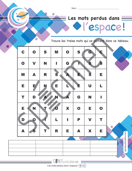 Activité dans laquelle l'élève doit identifier les mots qui se cachent dans une grille.