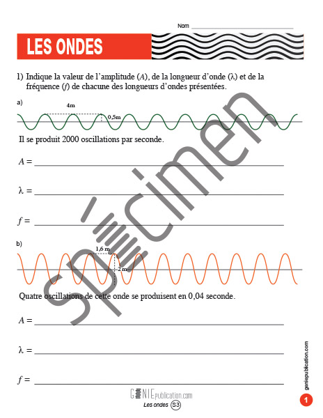L'élève doit analyser des ondes représentées graphiquement et textuellement et doit également répondre à des questions portant sur la puissance d'un son, la tonalité d'un son et de l'énergie transportée par une onde.