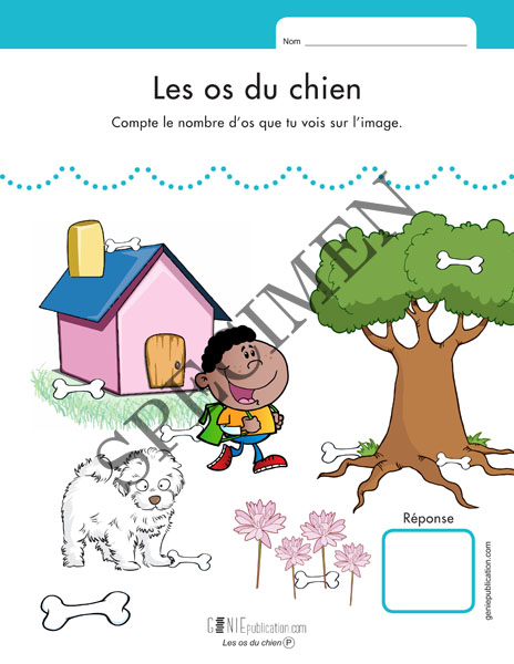 L'élève doit repérer et dénombrer les os qui sont cachés dans une illustration.