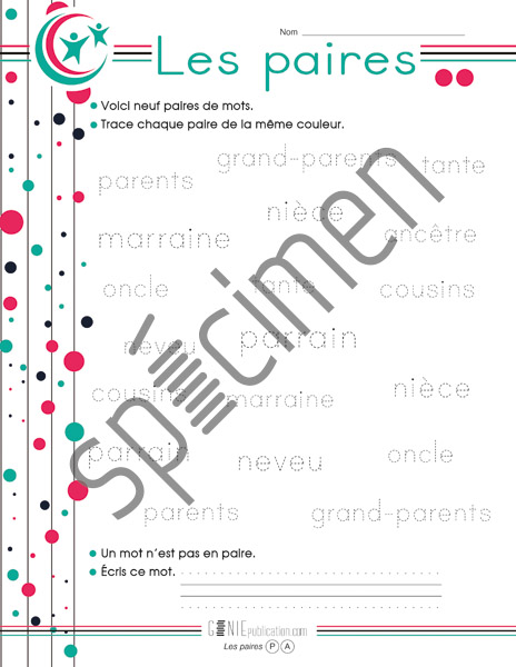 L'élève doit tracer des paires de la même couleur.