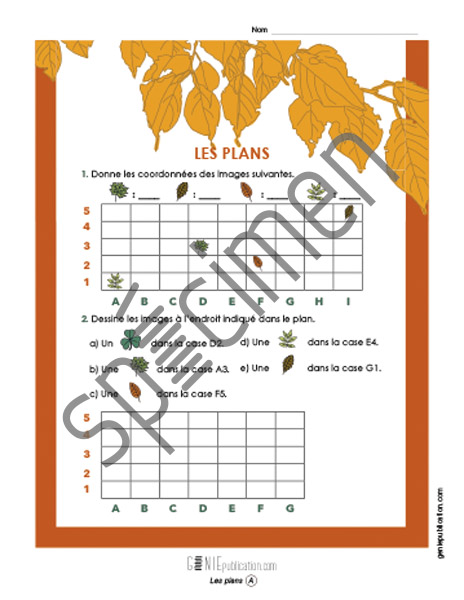 L'élève doit trouver les coordonnées de plusieurs images. Il ou elle doit aussi placer des images en utilisant les coordonnées.