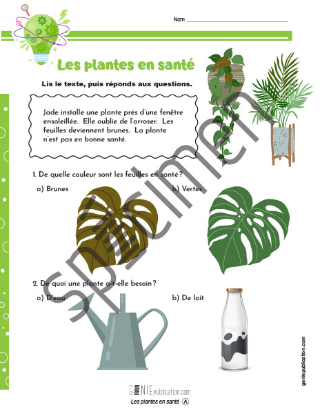 L’élève lit un texte sur les plantes et répond à des questions.