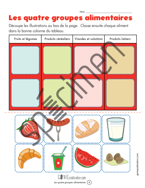 L'élève doit classer des aliments selon leur groupe alimentaire.
