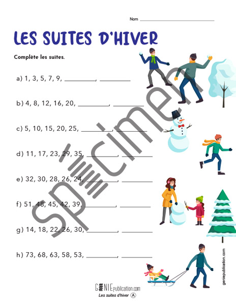 L’élève doit compléter les suites qui lui sont présentées.