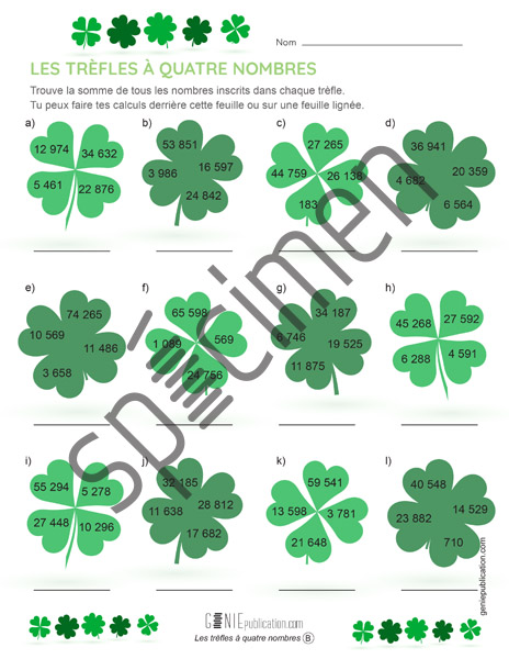 Activité d’addition à 4 nombres sur le thème de la Saint-Patrick.